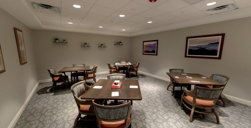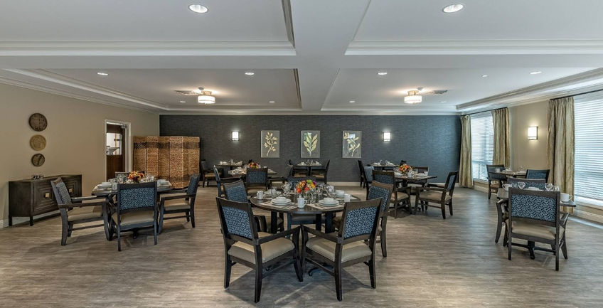 Beautifully designed common areas, lounges, outdoor courtyards, and activity rooms encourage residents to relax, socialize, and enjoy their day in a warm, home-like atmosphere.